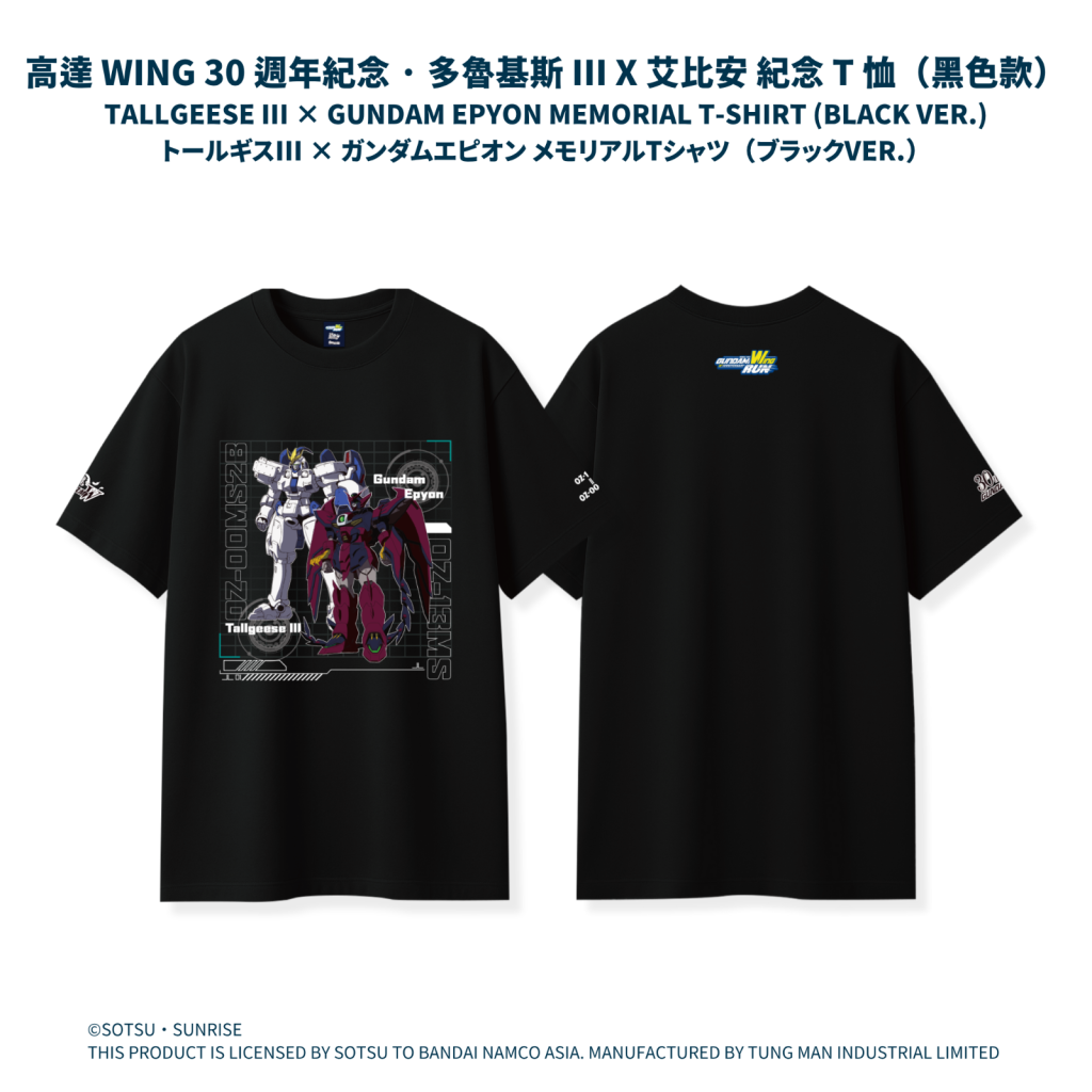《新機動戰記高達 W》30 週年限定官方授權服飾,以宿命對決的兩部經典機體 —— 多魯基斯 III(Tallgeese III)艾比安(Epyon) 為主題。