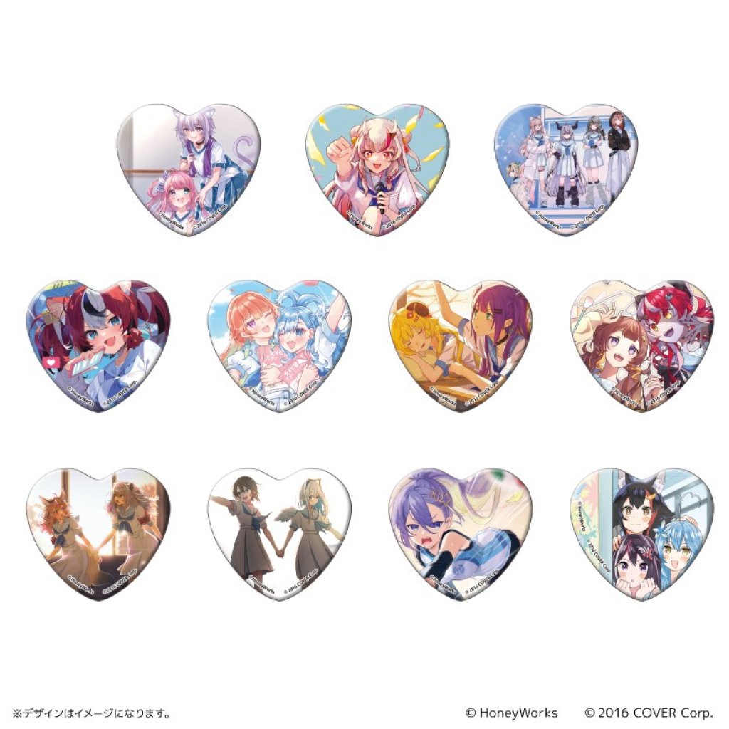 徽章以「hololive x HoneyWorks」的概念圖為主題,採用心形設計,造型可愛,讓您可以盡情欣賞藝人的面部表情。